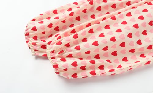 LittleSpring Little Girls Button Down Shirt for Kids Peter Pan Collar Heart Printing Blouse Long Sleeve Valentine's Day Tops Pink Size 7-8 6