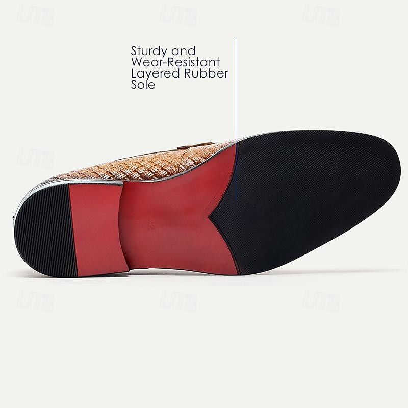 More information about Elegant Men's Woven Leather Loafers with Contrast Strap - Sleek Dress Shoes for Formal Occasions