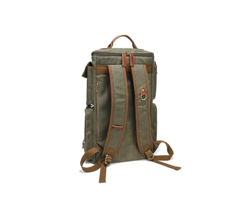 HOT ! peacechaos Heavy-Duty Waxed Canvas Backpack for Men, 17 Inch Laptop Rucksack with Genuine Leather, Multi-Pocket Travel Bag for Work, Hiking, and Camping
