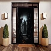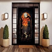 More information about Halloween Door Decorations Skull Halloween Door Covers Door Tapestry Door Curtain Decoration Backdrop Door Banner for Front Door Farmhouse Holiday Party Decor Supplies Skeleton