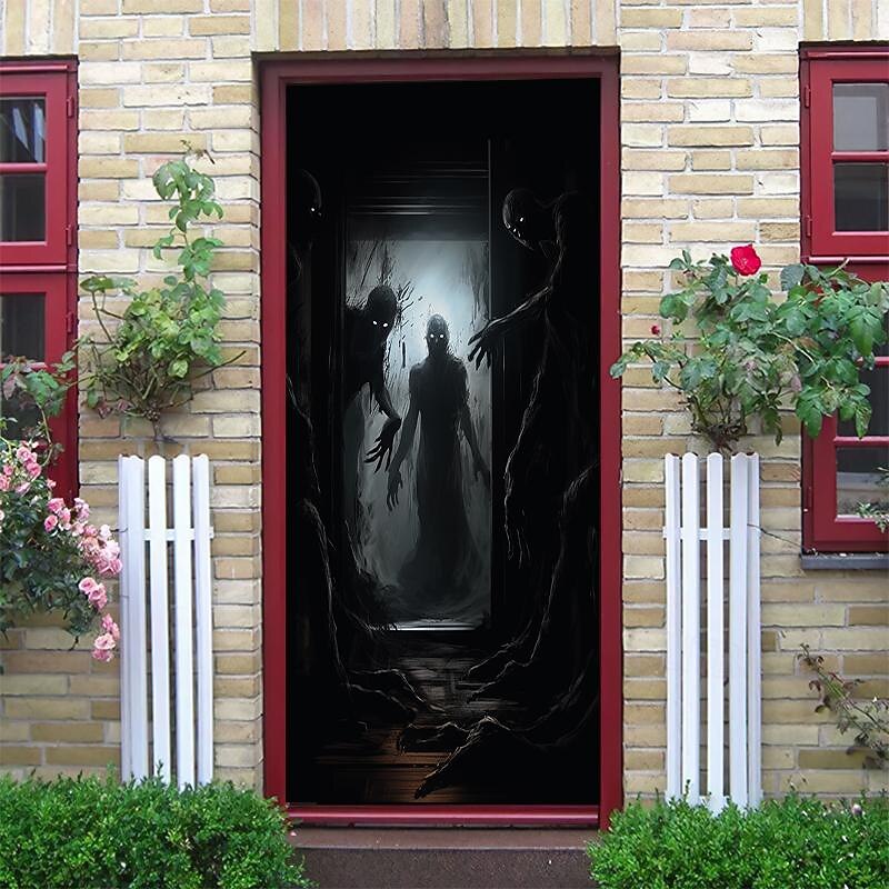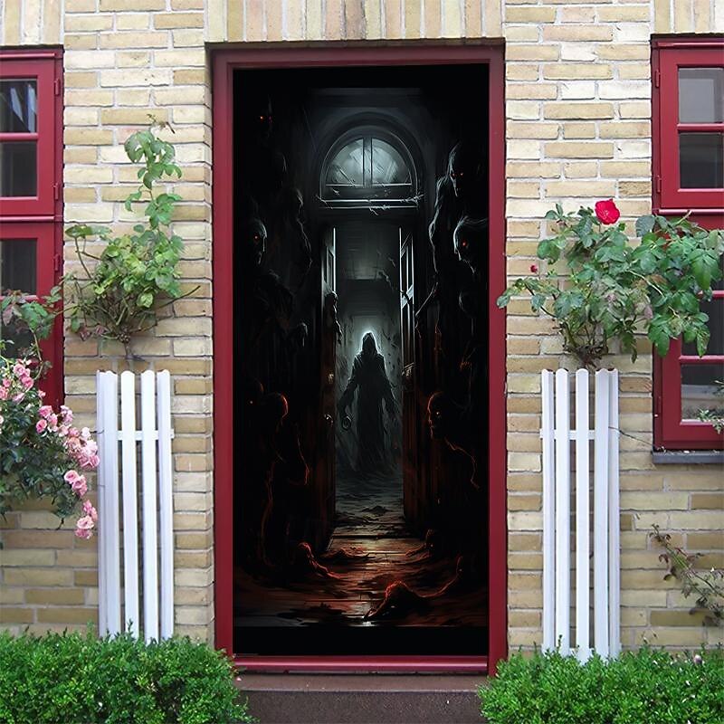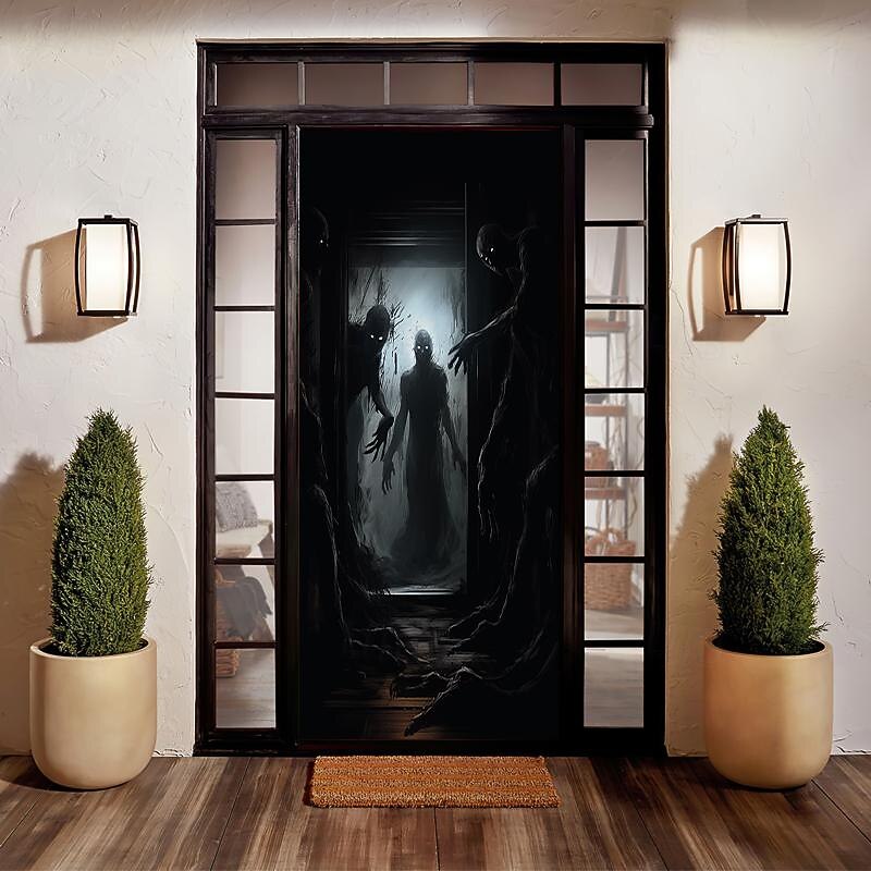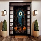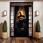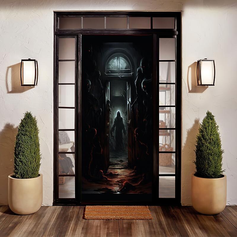 HOT ! Halloween Door Decorations Skull Halloween Door Covers Door Tapestry Door Curtain Decoration Backdrop Door Banner for Front Door Farmhouse Holiday Party Decor Supplies Skeleton