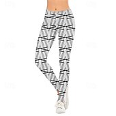More information about Women's Slacks Leggings Cozy Leggings Streetwear Casual Full Length Natural Geometic Elastic Waist Print Comfy Outdoor Comfortable Outdoor Vacation Holiday milk white Black & White Black and White