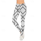 Women's Slacks Leggings Cozy Leggings Streetwear Casual Full Length Natural Geometic Elastic Waist Print Comfy Outdoor Comfortable Outdoor Vacation Holiday milk white Black & White Black and White 13