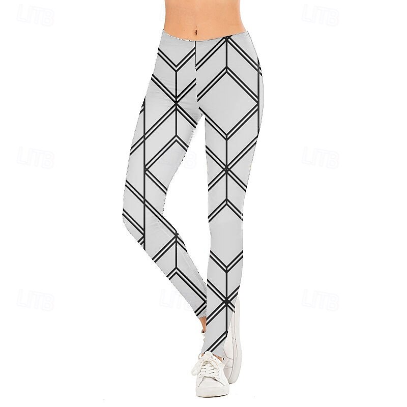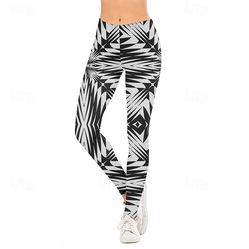 HOT ! Women's Slacks Leggings Cozy Leggings Streetwear Casual Full Length Natural Geometic Elastic Waist Print Comfy Outdoor Comfortable Outdoor Vacation Holiday milk white Black & White Black and White
