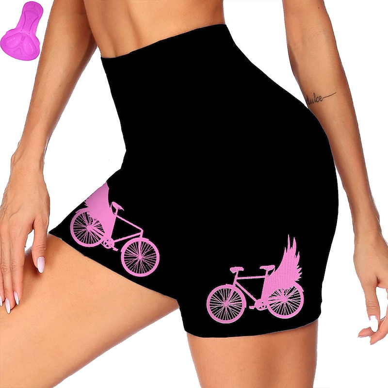 Highlights - Breathable and Moisture-wicking: made of high-quality polyester with 80% polyester and 20% spandex for a skin-friendly, breathable, and quick-drying experience, keeping you comfortable during long rides. - Highly Elastic: four-way stretchy crotch with high elasticity provides the perfect fit without the worry of torn fabric, accommodating your every movement. - 3D Thickened Protection Pad: designed with gel padding and 3D thickened foam padding to fit nicely around your hips without slipping, protecting your hipbone from injuries. - Anti-slip Silicone: silicone on the leg opening holds the bike shorts in place, preventing them from scrolling up when riding. - Perfect for Women's Athleisure: these stretchy shorts are ideal for mountain biking (MTB) or road cycling, featuring a graphic design that is both practical and stylish.