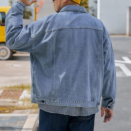 DGHM-JLMY Mens Lapel Jean Jackets Casual Loose Fit Button Down Jean Coat Denim Trucker Biker Cowboy Jacket Coats 6