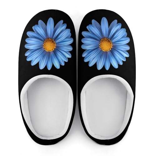 Blue Daisy Flower Women's Cotton Slippers Indoor Outdoor Slip-on Warm House Shoes with Anti-Skid Rubber Sole 7