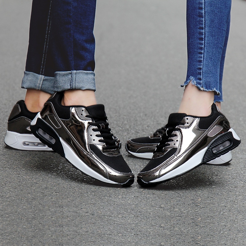 HOT ! Women's Gold Metallic Running Shoes with Air Cushion Sole for Sports and Fashion