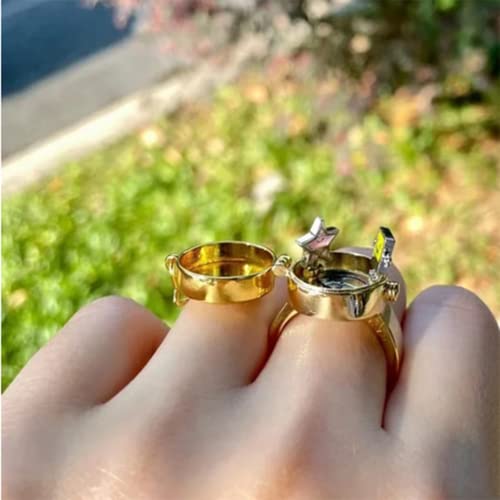HOT ! BFF Rings for 2 Best Friends Gold Cartoon Anime Aesthetic Ring Cute Rings Matching Couple Ring Adjustable Aesthetic Jewelry for Women