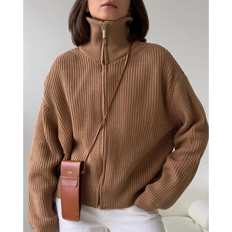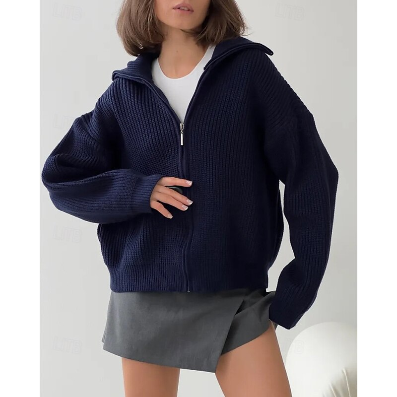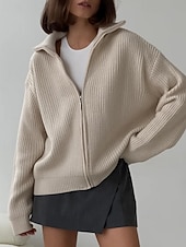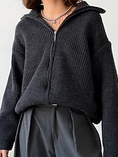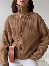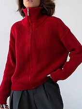 More information about Women's Sweater Cardigan Streetwear Casual Solid Color Stand Collar Zipper Knitted Long Sleeve Regular Tops Knit Daily Holiday Going out Black Red Fall Winter