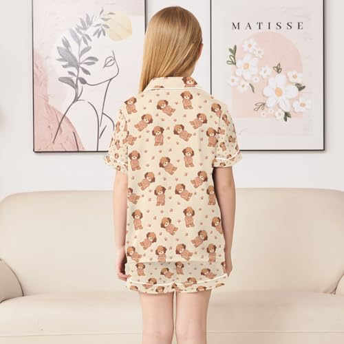 senya Cute Dog Footprint Aa Satin Summer Pajama Sets Silk Short Sleeve Button Down Sleepwear 4