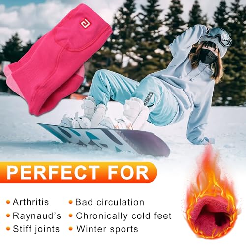 HOT ! Rechargeable Heated Socks for Women Men - 3.7V Electric Winter Warm Foot Warmer Socks, 3 Heating Levels Washable Thermal Socks for Skating Hiking Camping Fishing (Pink)
