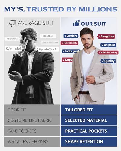 • SUPERIOR MATERIAL AND EXCELLENT QUALITY: MYS always focuses on details, and are willing to spend cost in the invisible places. The selected fabric is comfortable, breathable, and light to wear. It exhibits excellent wrinkle resistance. Extra big shoulder pads and chest pads inside keep the jacket sharp and stunning. Even after multiple washes, it can maintain its original texture and shape, making sure it always looks refreshed.