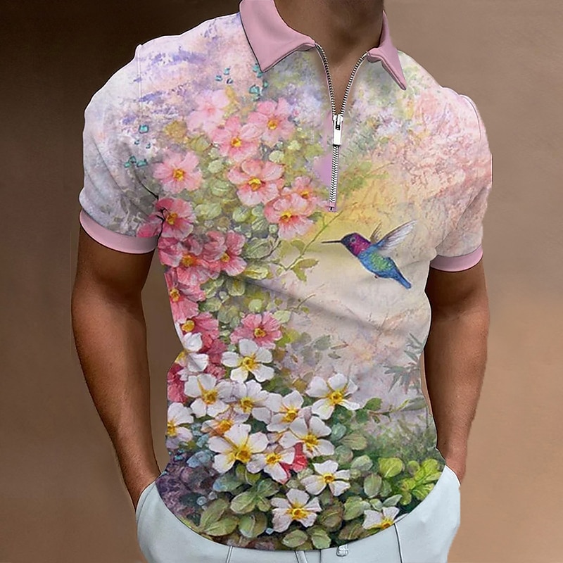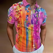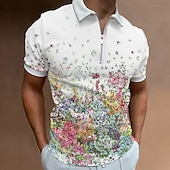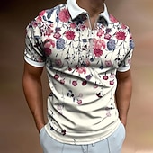 More information about Men's Floral Hawaiian Polo Shirts Golf Shirt Short Sleeve Polo Shirts Collared Shirts Casual Beach Wear Vacation Wear Tropical Wear Party Outfits 3D Print Quarter Zip Polo Light Yellow White Pink