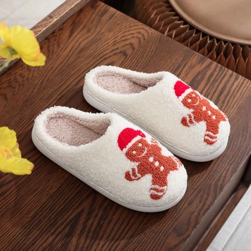 Christmas Gingerbread Man Fuzzy Slippers for Women and Men - Winter cozy House Couple Shoes - Cozy Indoor Home Bedroom Slippers