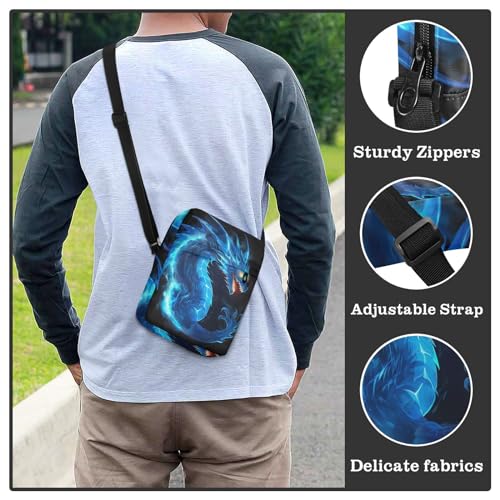 Crossbody Bag Blue Fire Flame Dragon Messenger Bag for Women Men Purse Shoulder Bag Satchel Bag with Adjustable Strap 214B5293 7