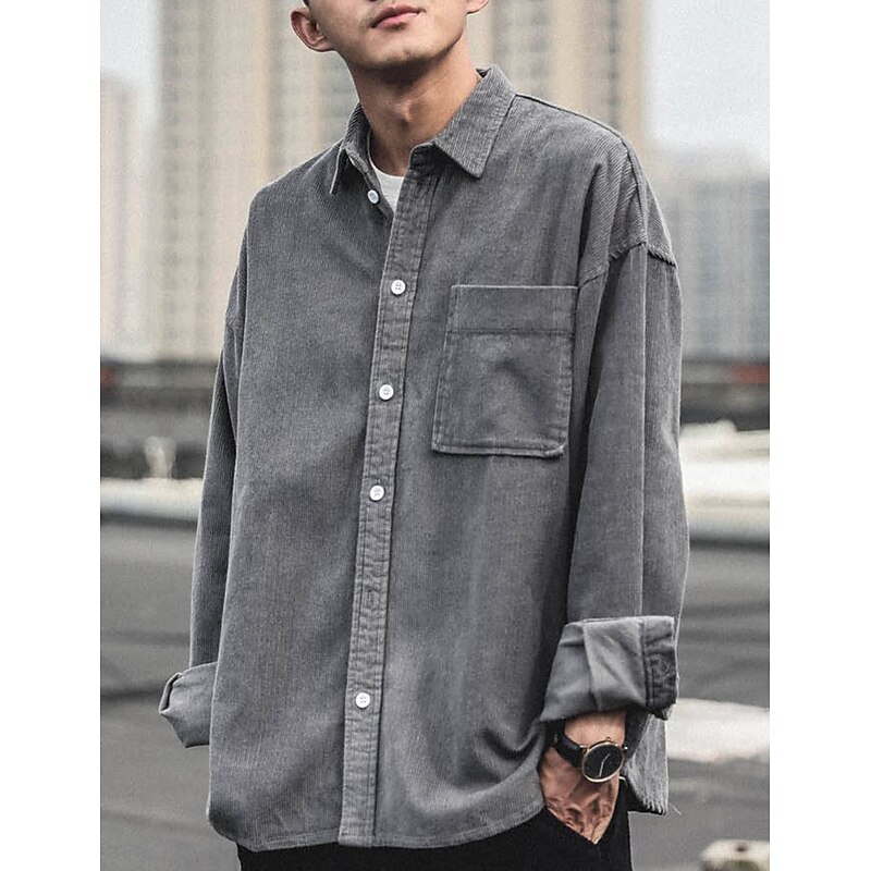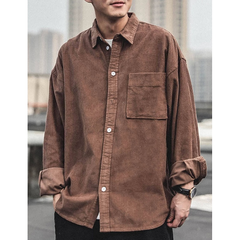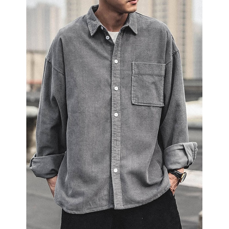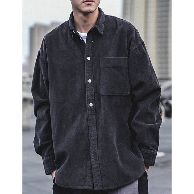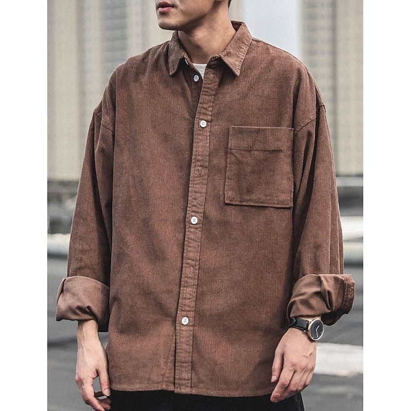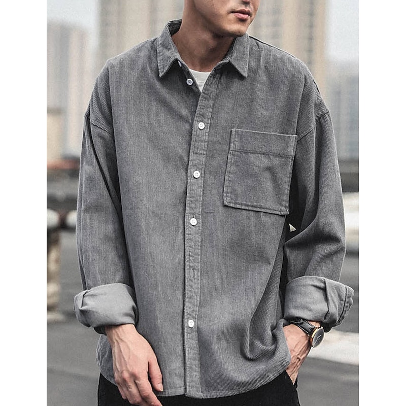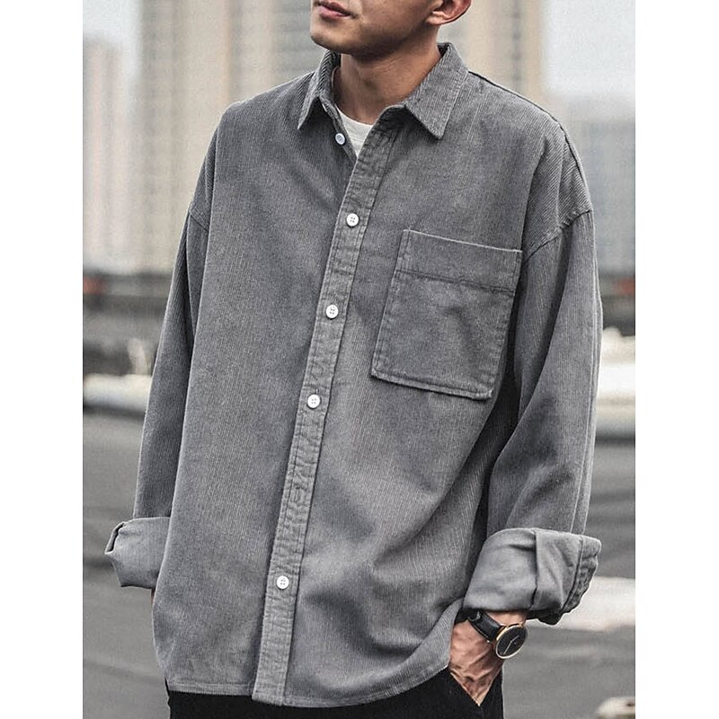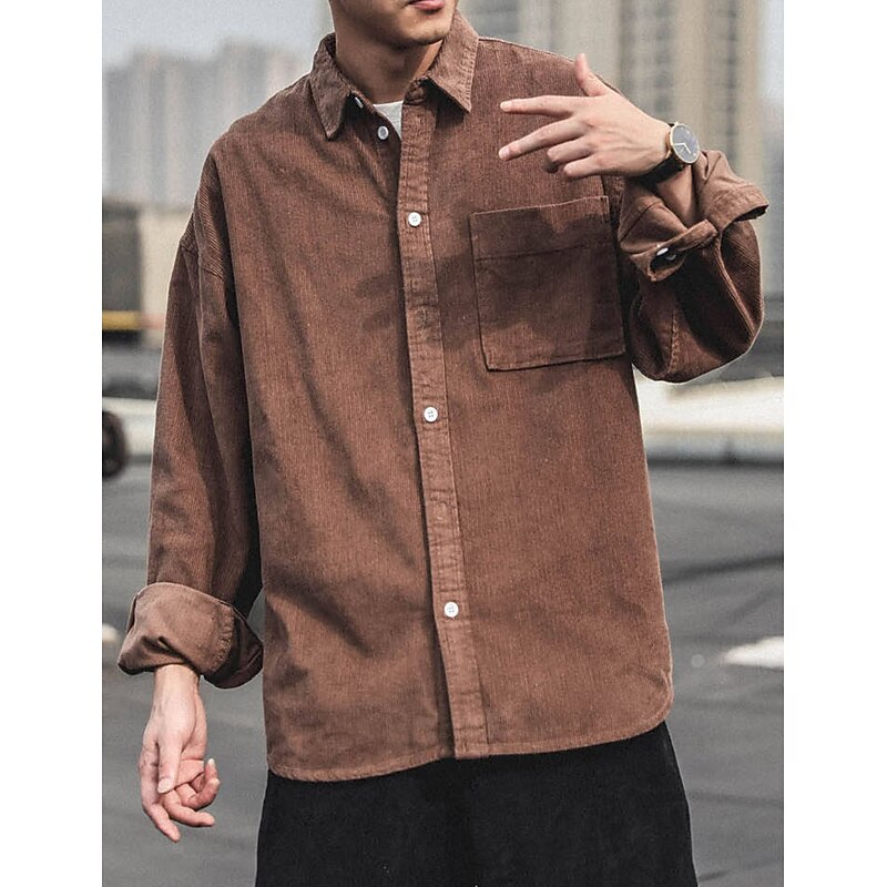 More information about Men's Corduroy Shirt Shirt Jacket Overshirt Plain Outdoor Daily Black Coffee Gray Long Sleeve Lapel Spring & Fall Clothing Apparel Pocket