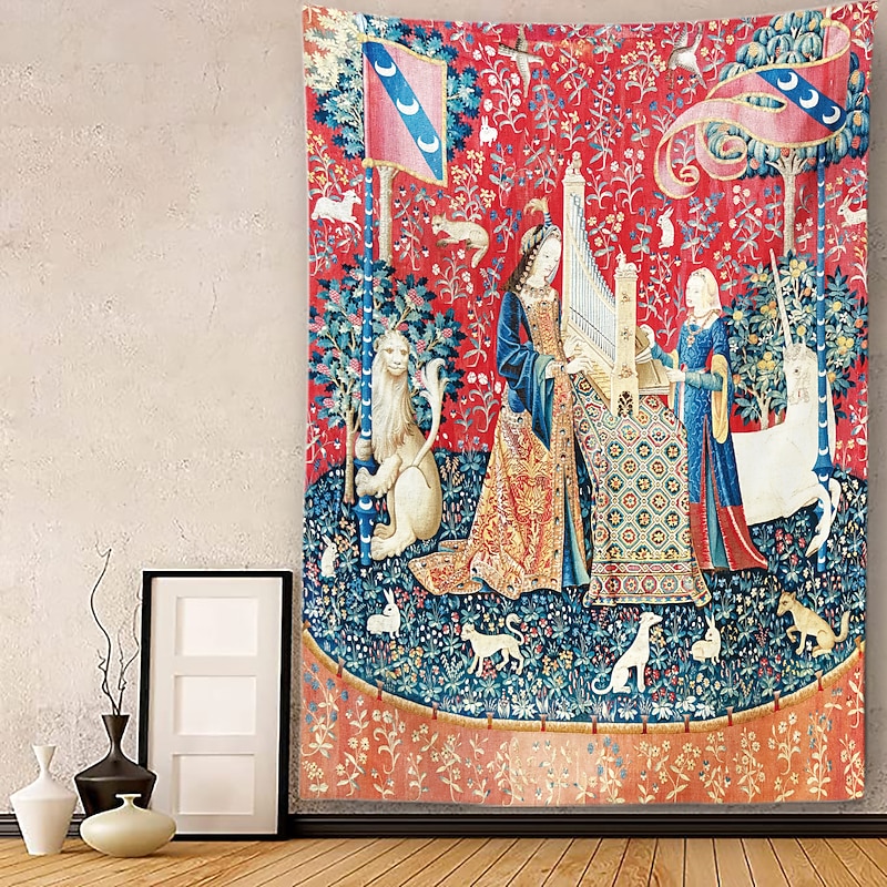 HOT ! Medieval Lady Painting Tapestry Middle Age Tapestry Wall Art Large Tapestry Mural Decor Photograph Backdrop Blanket Curtain Home Bedroom Living Room Decoration