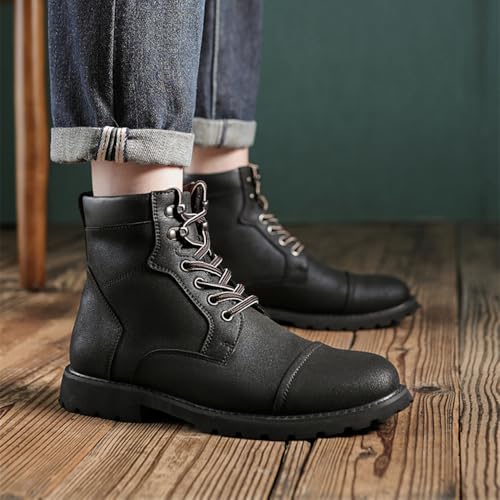 Men's Motorcycle Boots Black Platform Lace Up Combat Boots PU Leather Dress Boot for Business Casual 7
