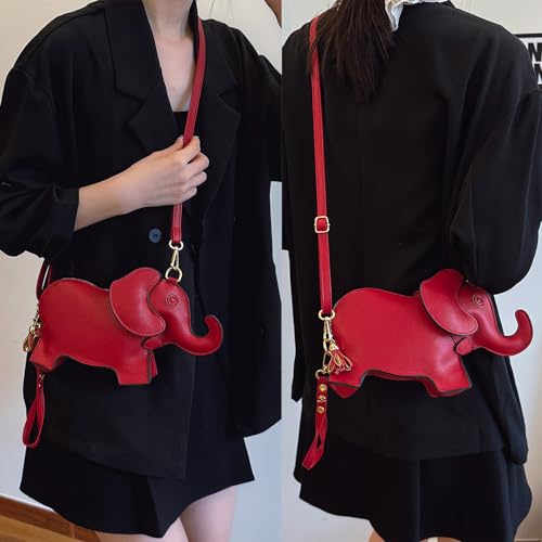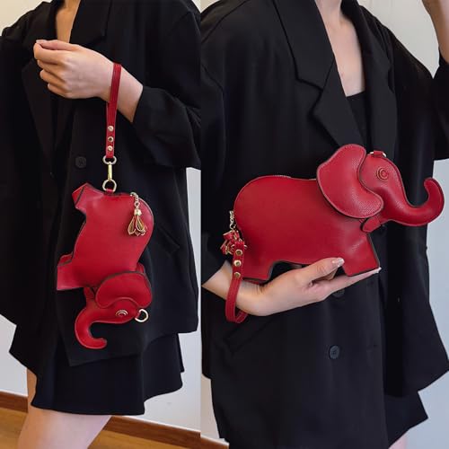 Women PU Leather Fun Weird Crossbody Shoulder Bag Wristlet Unique Novelty Elephant Purse 5
