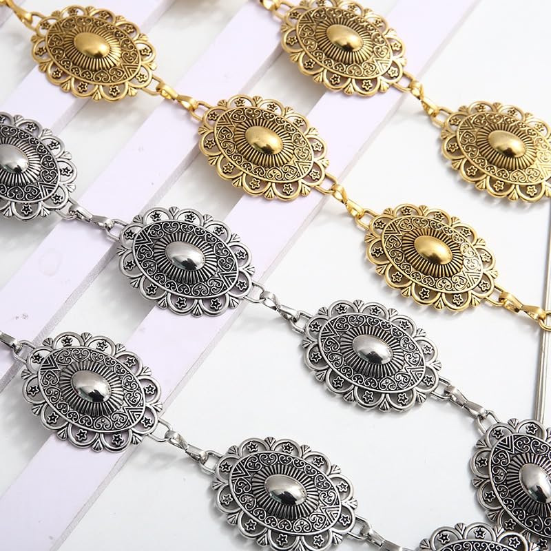 • 【STURDY AND Lightweight】The western concho chain belts for women is made of high quality metal alloy and inlaid with turquoise. which created by highly polished finishing, makes it more attractive and sparkling, sturdy and durable in use, and not easy to fade and break.