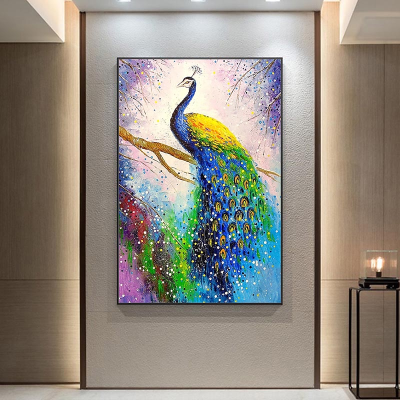 Mintura Handmade Abstract Animal Peacock Oil Paintings On Canvas Wall Art Decoration Modern Picture For Home Decor Rolled Frameless Unstretched Painting 11