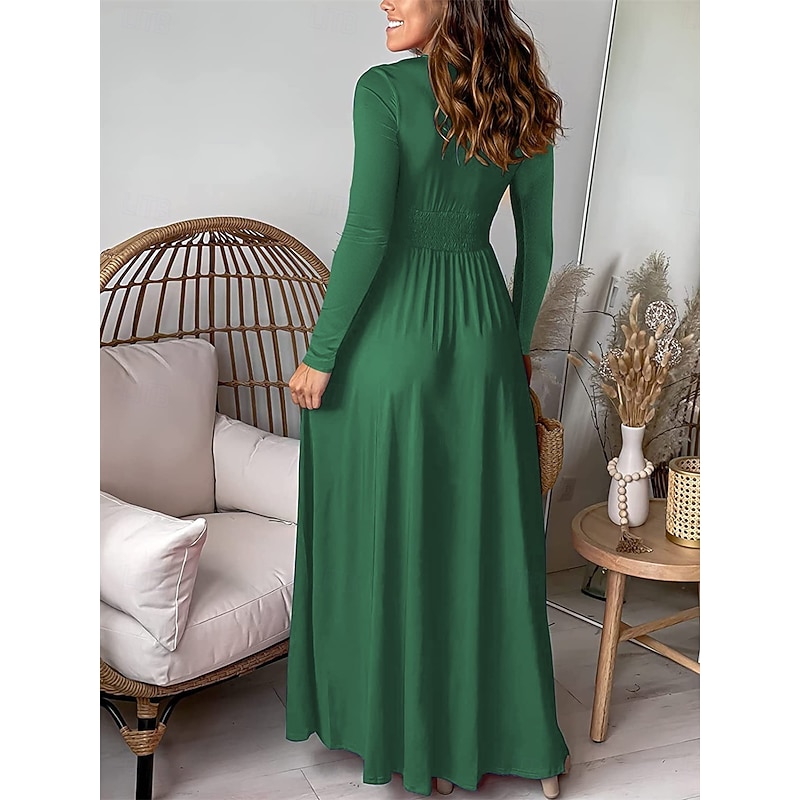 HOT ! Women's Maxi Dress Party Dress Cocktail Dress Wedding Guest Dress Chiffon Dress Elegant Stylish Ethnic Vacation Party Daily Regular Fit Plain Long Sleeve V Neck Blue Green Spring Fall