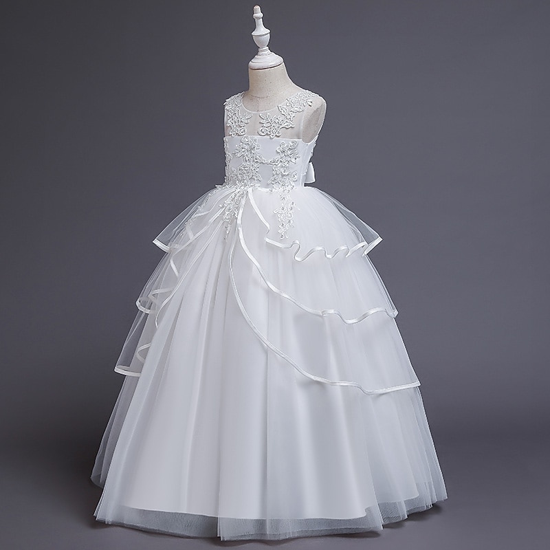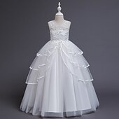 More information about Kids Girls' Dress Party Dress Solid Color Sleeveless Performance Wedding Birthday Mesh Fashion Princess Polyester Midi Party Dress Flower Girl's Dress Summer Spring 2-13 Years White Pink Blue
