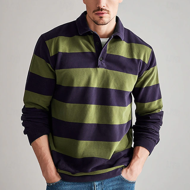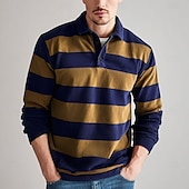 More information about Men's Horizontal Stripes Rugby Polo Long Sleeve Polo Shirts Collared Shirts Sportswear Casual School Outdoor Athleisure 3D Print Spring Fall Winter Red Blue Brown