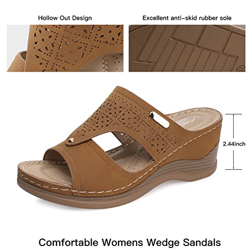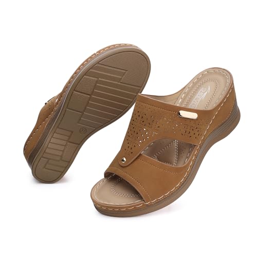 • Womens Sandal Arch Support: Brown sandals wedge women,comfy dressy sandals with wedges,women's summer sandals brown,blue dressy summer shoes,summer open toe sandals,open toe wedges for women,walking sandals arch support,wedge walking sandals women arch support,featuring slip-on arch support ensure day-long comfort.
