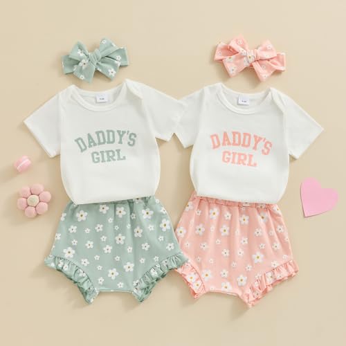 • Design: Newborn father's day baby romper: Short sleeve romper, summer round neck t-shirt, expandable shoulder, DADDY'S GIRL letter print, snap closure for easy diaper changing. Shorts: Elastic waistband, floral print. Comes with a headband.