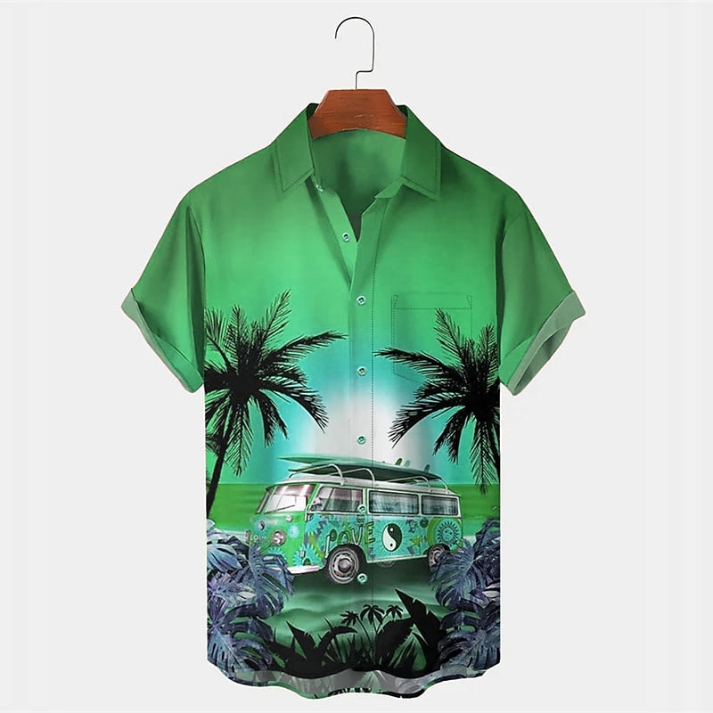 Men's Car Coconut Tree Tropical Plants Shirt Summer Hawaiian Shirt Aloha Shirt Short Sleeves Shirt Turndown Tropical Fashion Hawaiian Outdoor Street Hawaiian Black Yellow Blue S M L 5