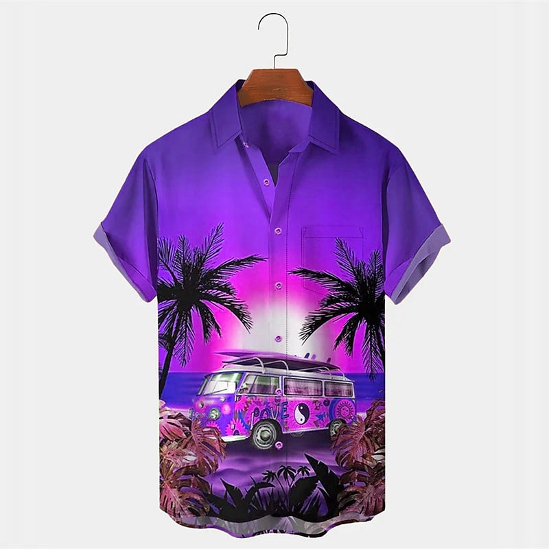Highlights [Fabric:] Crafted from lightweight and breathable polyester, this short-sleeve shirt offers a comfortable fit ideal for warm weather. The material ensures you stay cool and at ease throughout the day, making it perfect for a sunny beach setting. [Fit:] The shirt features a regular fit with a relaxed silhouette, allowing for easy movement and a laid-back feel. Its classic button-down design with a standard turndown collar enhances its timeless appeal. [Design Highlights:] This shirt is adorned with a vivid print of tropical elements such as coconut trees and vibrant sunset gradients that transition from orange to yellow. Complemented by playful graphics of retro cars, it captures a sense of whimsy and nostalgia. A practical single chest pocket adds functionality to its design. [Occasions:] Whether you're hitting the street, enjoying a day out, or lounging at a beach party, this tropical shirt is perfect for a variety of casual occasions. Its vibrant style and comfortable fit make it an excellent choice for holidays and outdoor adventures. [Size Range:] Available in a wide range of sizes from S to 5XL, ensuring a suitable option for a diverse group of individuals looking to embrace a touch of tropical flair in their wardrobe.