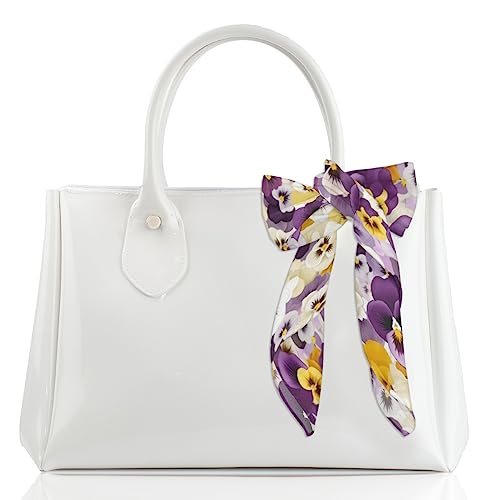 QsirBC Cartoon Pansy Square Silk Scarf, Summer Head Scarf, Hair Scarf for Women Soft Smoothness for Travel Yoga Handkerchief Shawl Sunscreen Gift 23.6× 23.6 Inches 1