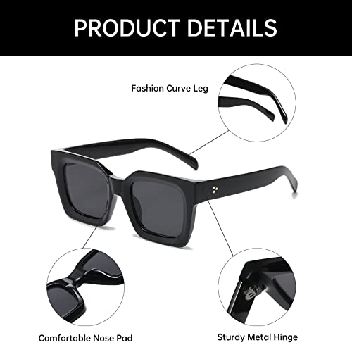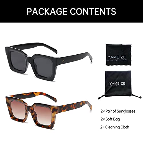 YAMEIZE Oversized Thick Frame Rectangle Sunglasses - Vintage Square Chunky Sun Glasses Driving outdoor for Women Men