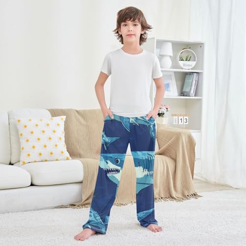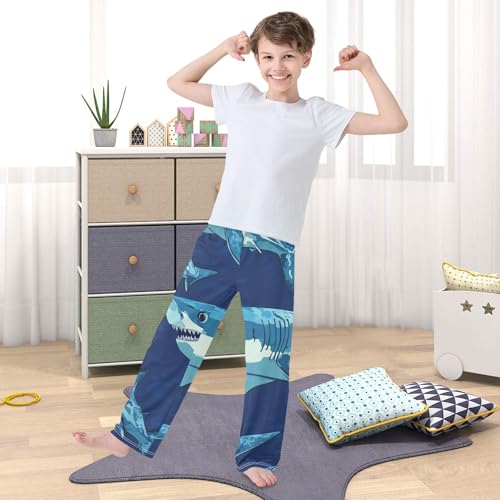 Marine Shark Boys Long Pants Soft Trousers Elastic Waist Kids Lounge Bottoms with Pockets S-XL 6