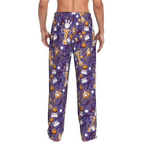 Bowling Game Print Adult Sleep Lounge Pajama Pants,Men Pajama Bottoms With Pockets Drawstring 3