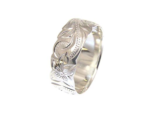 925 Sterling Silver Hawaiian plumeria scroll black enamel Kuuipo 8mm cut out ring size 4-14 6