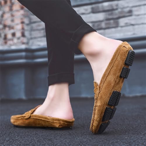 Men's Slippers Slip-On Loafers Leather Formal Wear Casual Open Back Business Casual Shoes Men's Driving Shoes 5