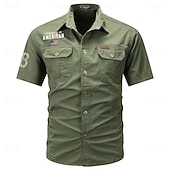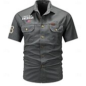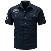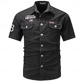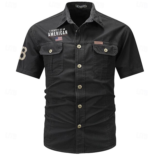 More information about Men's Flag American US Flag Letter Printed Work Shirt Western Shirt Cargo Shirt Short Sleeve Casual Tactical Going out Summer Turndown Buttons Print Black Army Green Dark Blue Gray