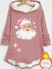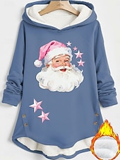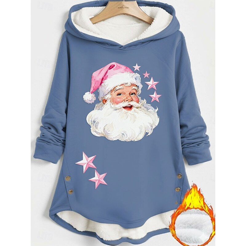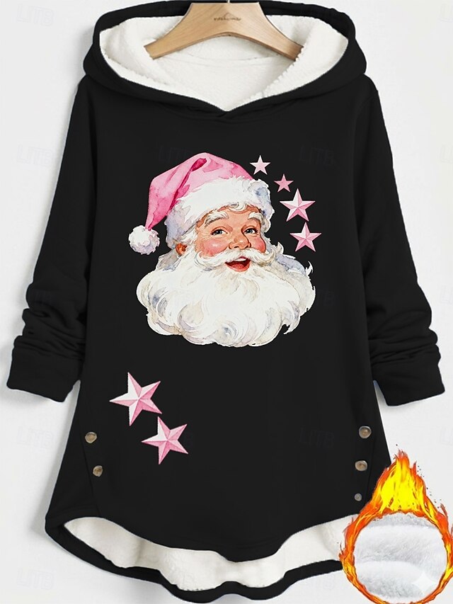 More information about Women's Pullover Hoodie Sweatshirt Santa Claus Warm Casual Long Sleeve Hooded Long Tops Street Dailywear Holiday Buttons Print Black Dark Pink Blue Fall Winter