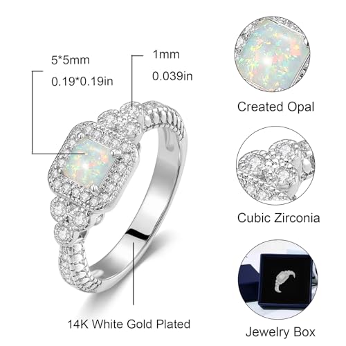 • ❤ Created White Fire Opal Ring: Opal stone is October's birthstone gemstone, Symbolize lucky and hope. Ideal opal ring gift to someone who was born in October.This synthetic opal stone can take on a brilliant rainbow of colors that no other gemstone can capture.Very beautiful,noble and elegant opal ring, suitable for daily wear.
