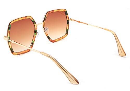 • | Large Geometric Sunglasses | -- designed in an oversized square shape favored by 70s icons. These women sunglasses are 100% UV400 protection against harmful UVA/UVB rays. Geometric Hexagon square sunglasses: plastic and metal combination frame; non-mirrored gradient lenses; adjustable nose pades; User-friendly silicone foot protection