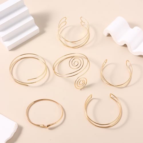 • Arm Cuff Jewelry for Women: Includes minimalist arm cuff, swirl arm cuff, coil arm cuff bracelet, layered arm bangle, wire arm bracelet and gold open arm cuff. You can freely match them, the arm bracelet upper arm makes you charming