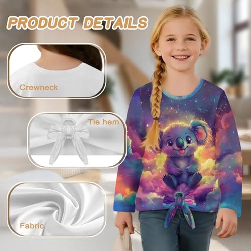 Girls Long Sleeve Shirts Cute Fall Clothes Tie Front Tops Crewneck Blouse for School Activewear 5-12 Years 4
