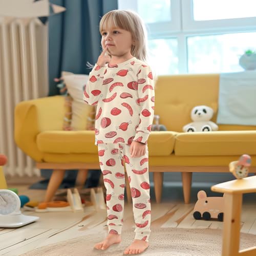 Pajama Sets Long Sleeve Yummy Meat Pattern Soft Comfy Sleepwear 2 Piece PJS 3-8T 2