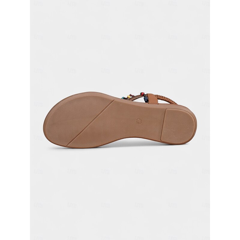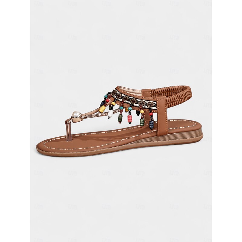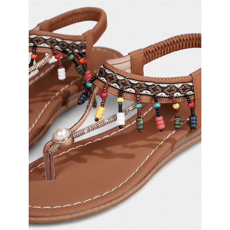 Women's Boho Beaded T-Strap Sandals with Pearl Accent  Colorful Flat Thong Sandals for Beach Vacations, Summer Festivals and Casual Outfits 1