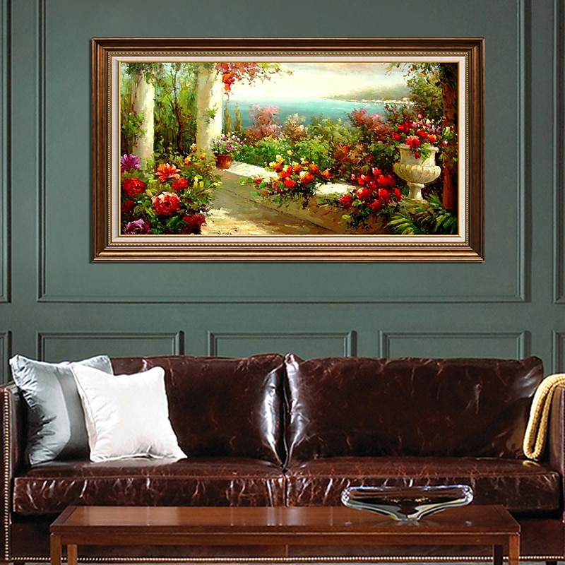 More information about Handmade Oil Painting Canvas Wall Art Decoration Impression Scenery Mediterranean Vintage Garden View for Home Decor Rolled Frameless Unstretched Painting