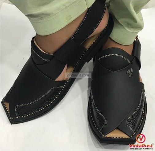 Handmade Leather Peshawari Chappal: Men's Black Casual Sandals 5