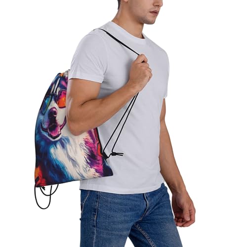 Colorful Dogs Print Drawstring Bags Gym Sports Travel Work Sack String Bag Yoga Bag Unisex Adult 6